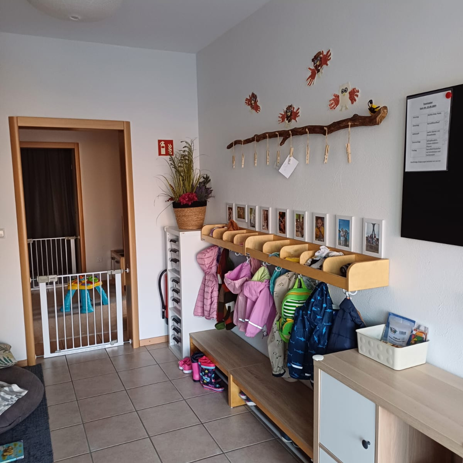 Eingangsbereich. Dieser verfügt über eine große Garderobe, an der jedes Kind
